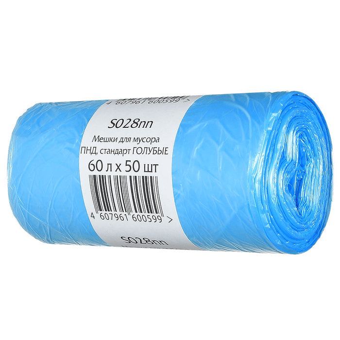 Мешки д/мусора ПНД, 60л, 50шт, 60х70, 7,5 мкм, ГОЛУБЫЕ