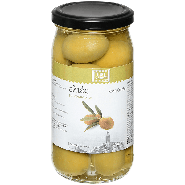 Оливки Джаст Грис Миконские в рассоле перец/чеснок 500г