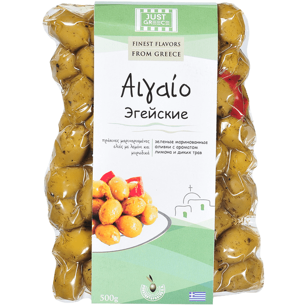 Оливки Джаст Грис Эгейские в рассоле лимон/травы 500г