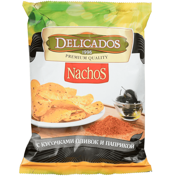 32233 Чипсы кукурузн.Начос Кус.оливок и папр.Т15х150г. Delicados
